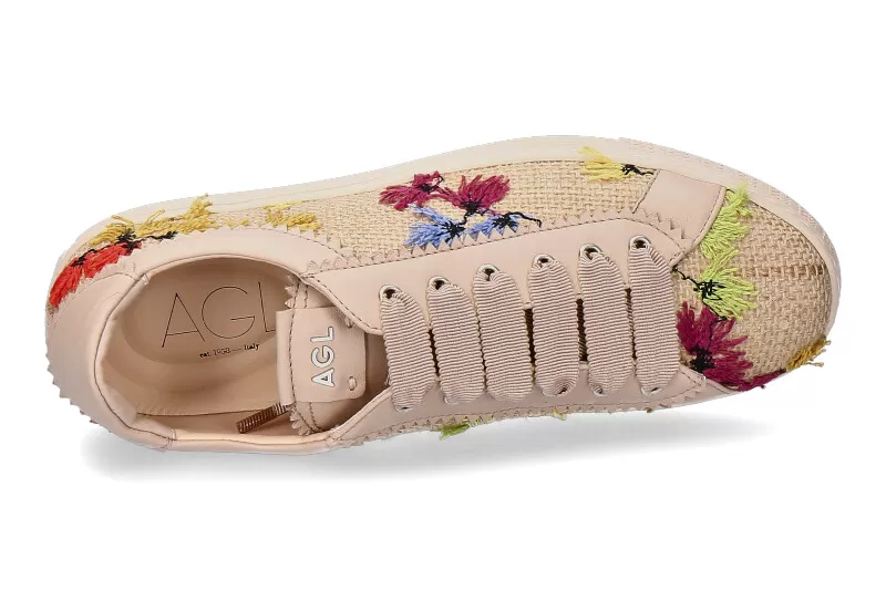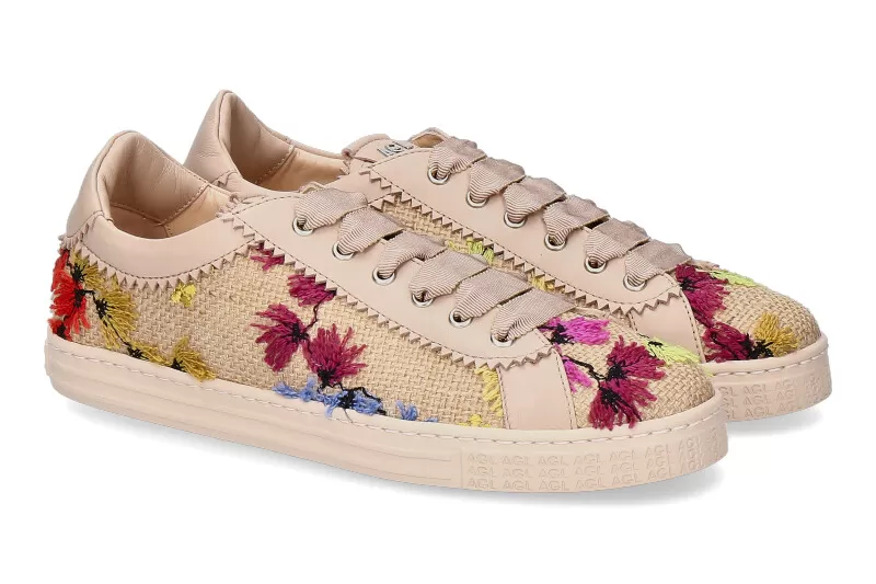 The popular SADE sneakers by AGL are made of raffia, a material reminiscent of summer, beach holidays and leisure. And it’s also perfect for the city, for work as well as for leisure. The leather-covered lining is equipped with a soft insole, which is also changeable. Attilio Giusti Leombruni shoes are very well made in Italy.