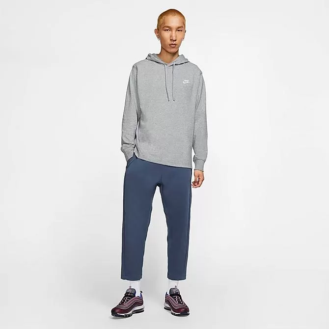 No cool-weather wardrobe is complete without the Men’s Nike Sportswear Club Jersey Pullover Hoodie. Soft cotton jersey fabric sporting clean Nike visuals deliver classic comfort and is perfect for layering on days and nights where a little extra coverage from the elements is needed. Add one color to your wardrobe for a closet staple you can always count on, or pick up multiple colors to master the fundamentals of freshness when cool or wet weather makes its way into the forecast.