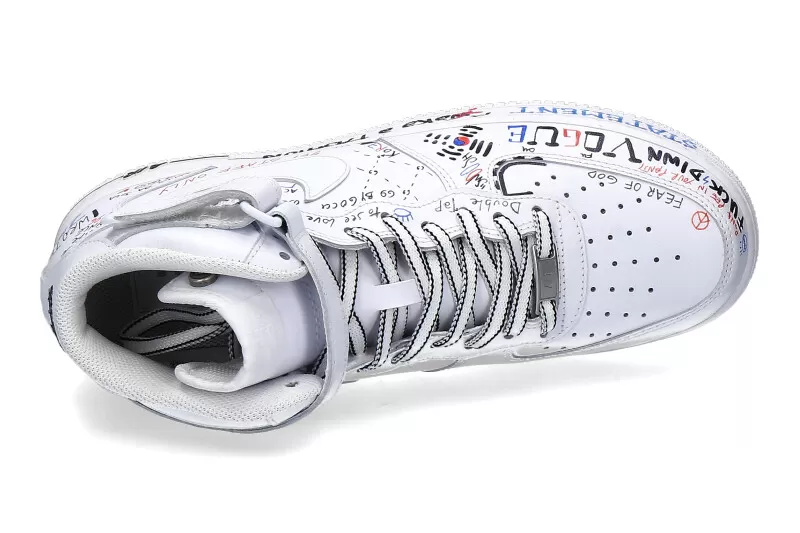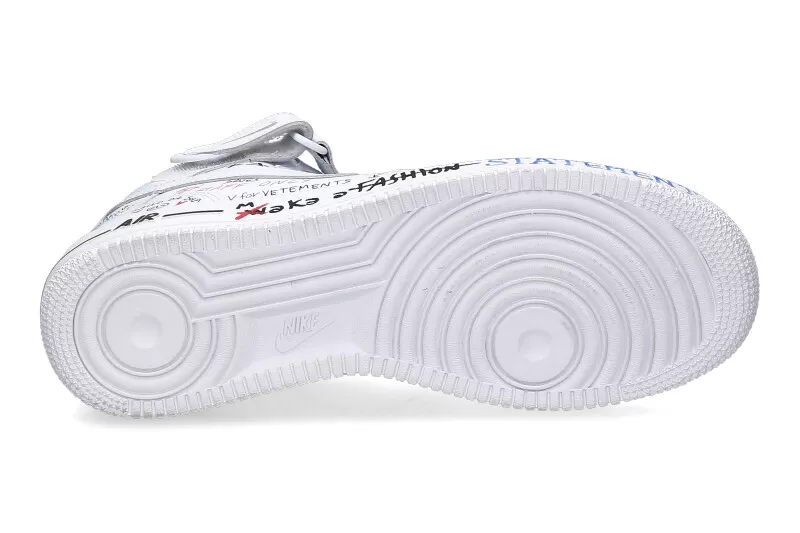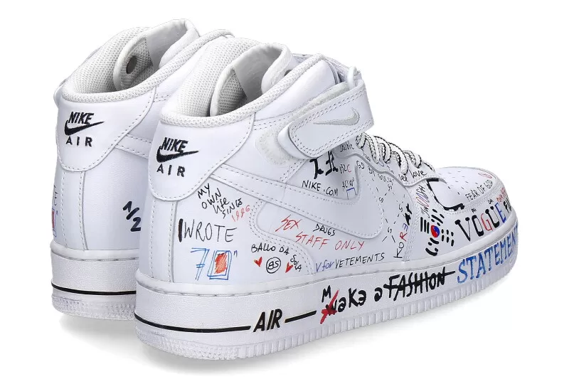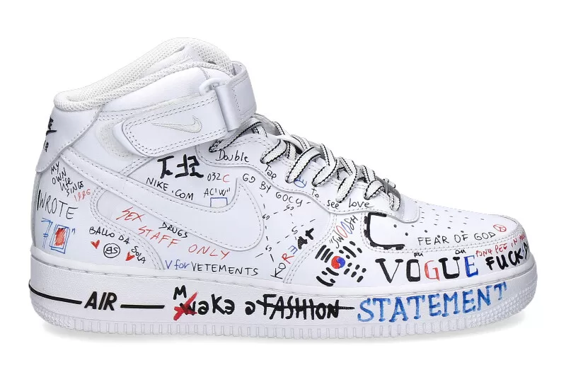 The Nike AIR FORCE ONE is made of white leather and features a great design by Ballo Da Sola. The model has a removable insole and a padded edge around the ankle. The shoes are designed and refined in Italy, making each shoe unique.