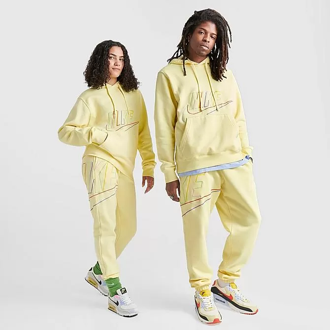Cozy enough to be your go-to lounging pants and fresh enough for all your outings, the Nike Club Fleece+ Futura Logo Fleece Sweatpants offer the best of both worlds for a pair of must-have sweats. Brushed Club Fleece+ fleece covers your lower body in high-class comfort that only gets better with time, while a bold, multicolored Futura logo outline stands out for signature Swoosh style.
