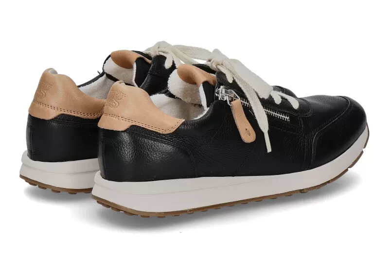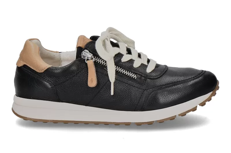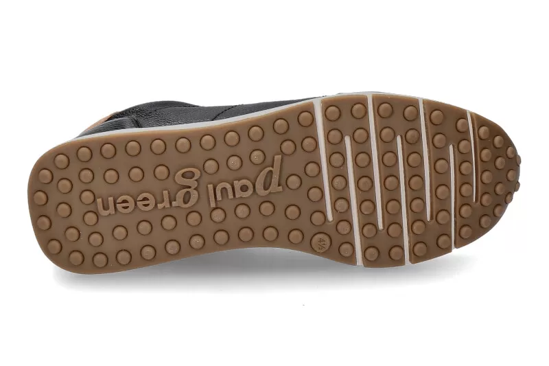 A black sports shoe from Paul Green that every woman needs in her wardrobe. The sneaker has a convincing sporty look and is made of smooth leather. A padded upper edge impresses with a perfect feel and the super soft finish ensures stunning comfort. The sporty rubber outsole with studs impresses with its feel-good factor. Paul Green shoes are made in Austria.