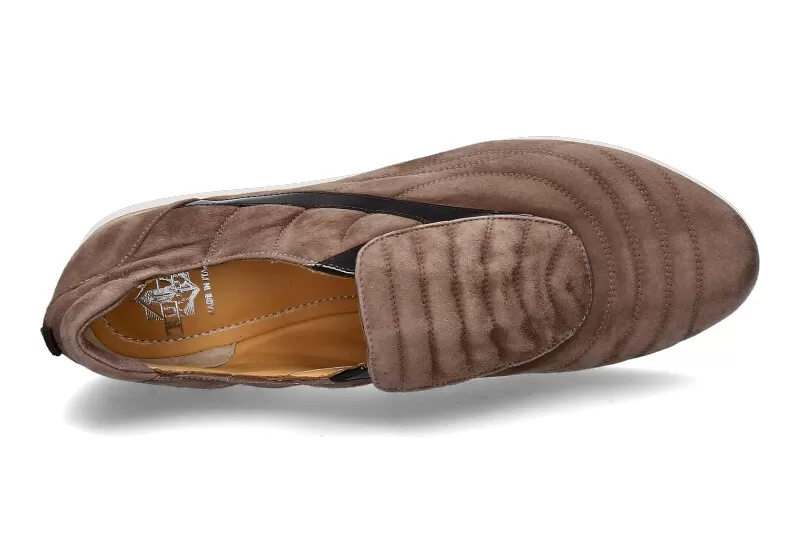 The Truman’s slip on is the epitome of Italian craftsmanship and style. Made from high-quality brown suede leather, this slip on is a luxurious addition to any wardrobe. The supple leather molds to the foot for a comfortable fit, while the white rubber sole provides excellent traction and durability. The slip on design makes this shoe incredibly easy to wear, allowing you to slip them on and off with ease. The attention to detail in the construction of this shoe is evident in every stitch, ensuring that it will last for years to come. Truman’s is known for their commitment to quality and style, and this slip on is no exception. Whether you’re running errands or heading out for a night on the town, this slip on is the perfect finishing touch to any outfit. Experience the luxury and style of Truman’s with this stunning brown suede leather slip on.