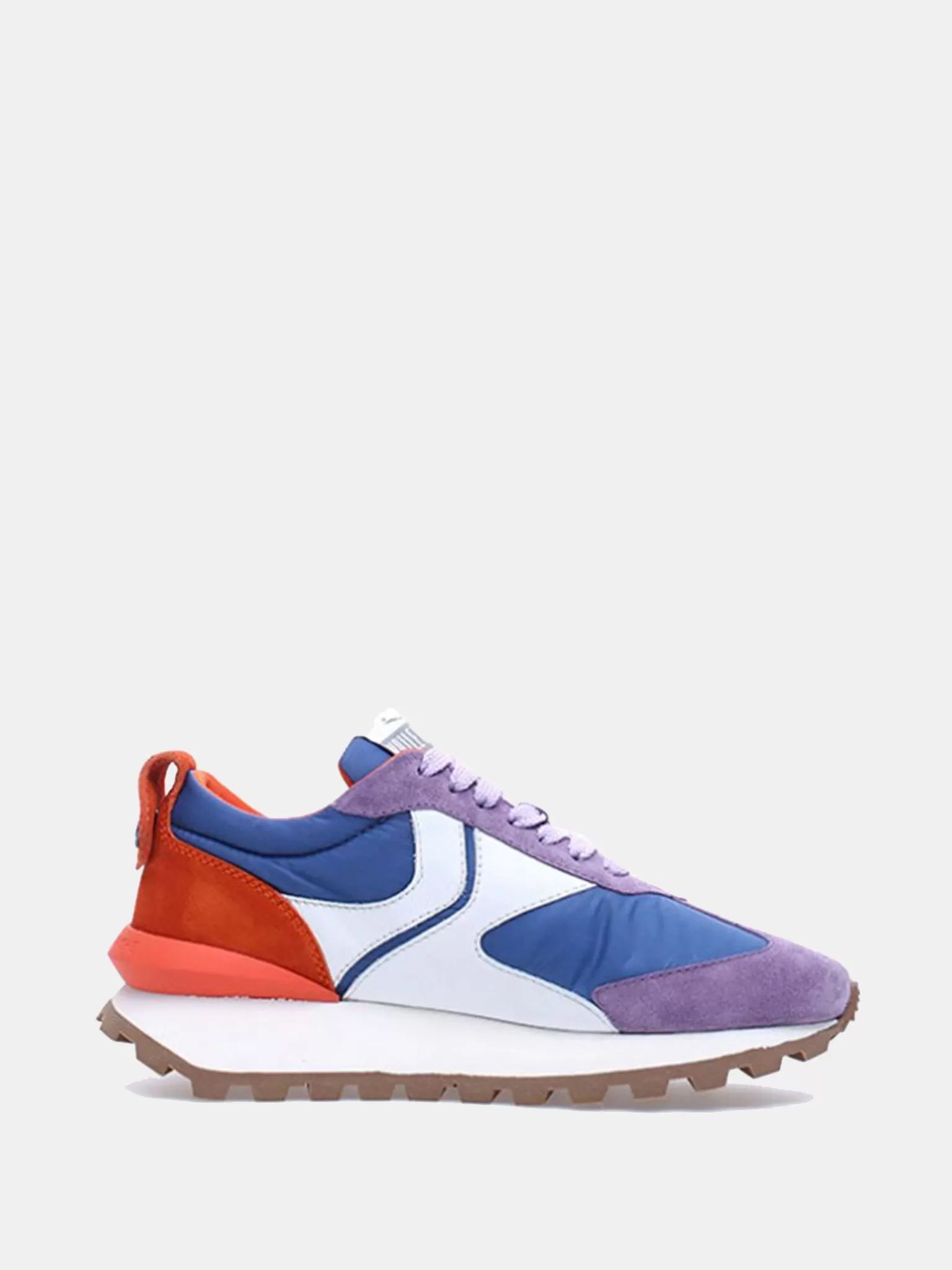 The winter version of the Qwark sneaker model boasts a feminine flair and bold style. The suede and leather insert-embellished technical fabric upper creates an elegant look. The rubber heel stabiliser defines geometric lines and bestows a high-tech touch to the model. Two-tone rubber sole with an indented tread.