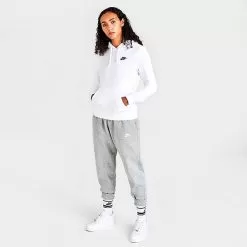 Women’s Nike Sportswear Club Fleece Pullover Hoodie (Plus Size) Dark Grey Heather/White – DV5090 063