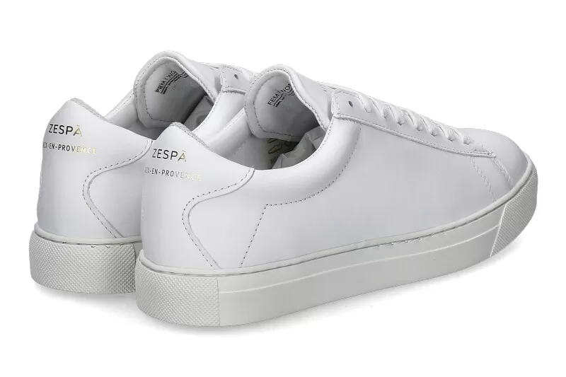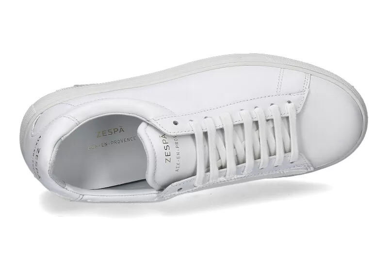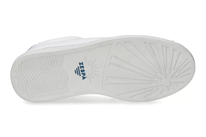 The Zespa women’s sneakers are stylish and comfortable shoes made of high-quality nappa leather in the colour white. The sneakers have a classic shape with a rounded toe cap and a flat sole. The soft leather ensures a comfortable feel and fits the foot perfectly. The shoes are decorated with a decorative perforation on the front, which gives them a sporty touch. The insole is padded and offers additional comfort when walking. It is also replaceable. The model is a versatile choice for everyday wear if you prefer a sporty yet stylish look. They can be easily combined with many different outfits and are a must-have for every shoe wardrobe. ZESPA shoes are made in Portugal.